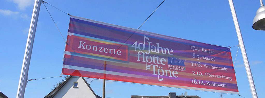 Das Signet des Musikvereins nennen die Lantershofener die Blechlawine. Einmal in Bewegung nehmen sie alle Zuhöhrer mit und unterhalten mit Blasmusik auf Festen und zwei mal in Konzerten im Jahr. Das alles wird gestalterisch begleitet.